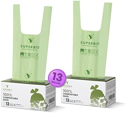 Amazon Com Superbio 13 Gallon Compostable Handle Tie Trash Bags 30 Count 2 Pack Leakage Proof Tall Kitchen Garbage Bags Certified By Bpi And Ok Compost 49 2l 0 87 Mil Health Household