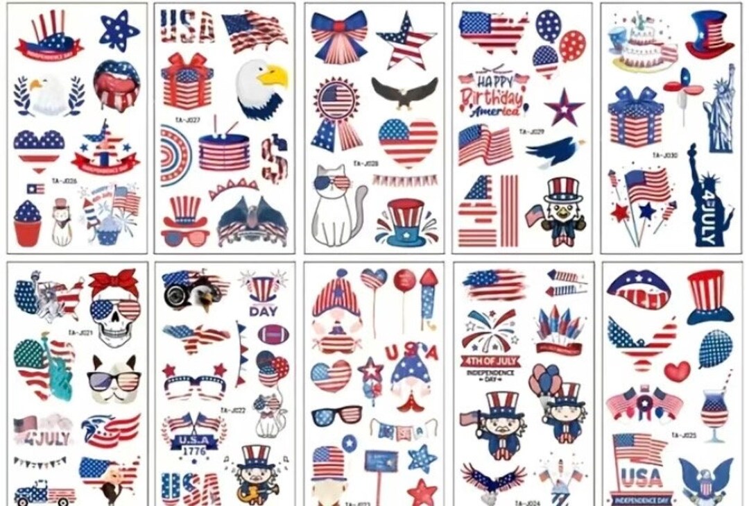 100 Pcs Temporary 4th Of July Tattoos Patriotic Etsy